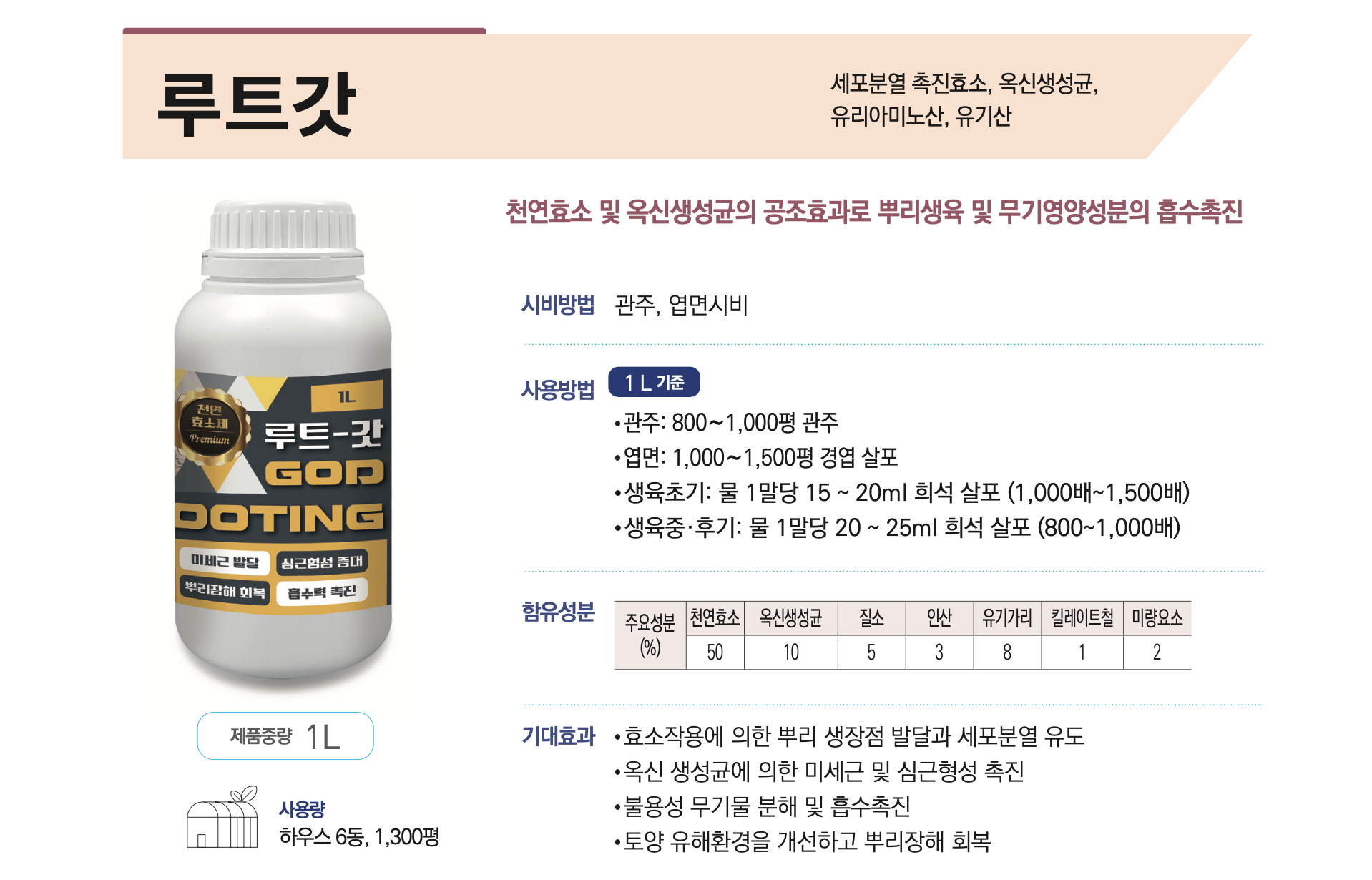 천연효소 및 옥신생성균의 공조효과로 뿌리생육 및 무기영양성분의 흡수촉진
